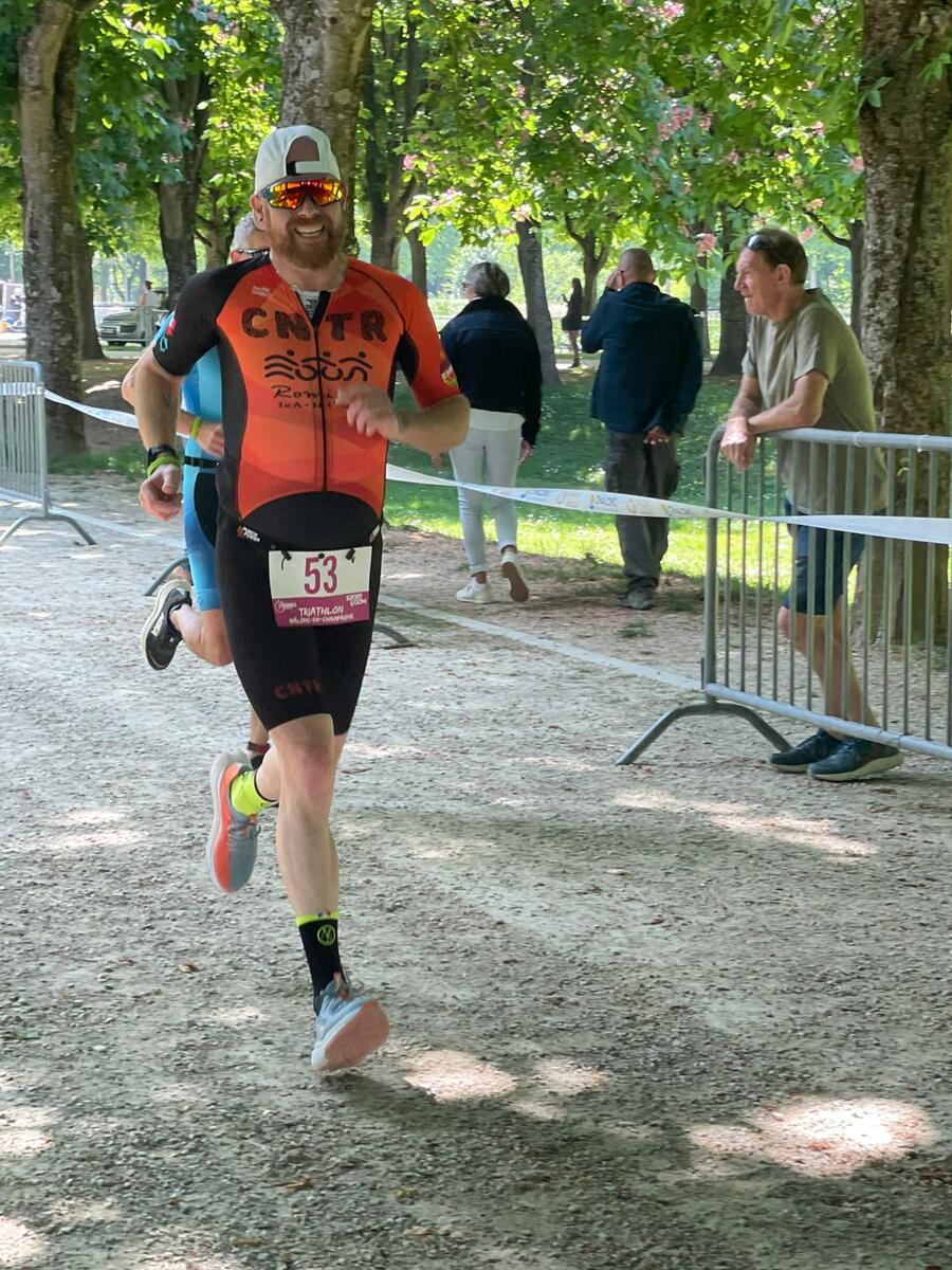 Catherine et Olivier ont participé aujourd'hui au triathlon de Châlons en Champagne. Une étape sous un beau soleil mais dans une eau un peu froide (16° degrés). Catherine finit 62/77 au XS et Olivier 122/226 au S. Bravo à tous les deux.